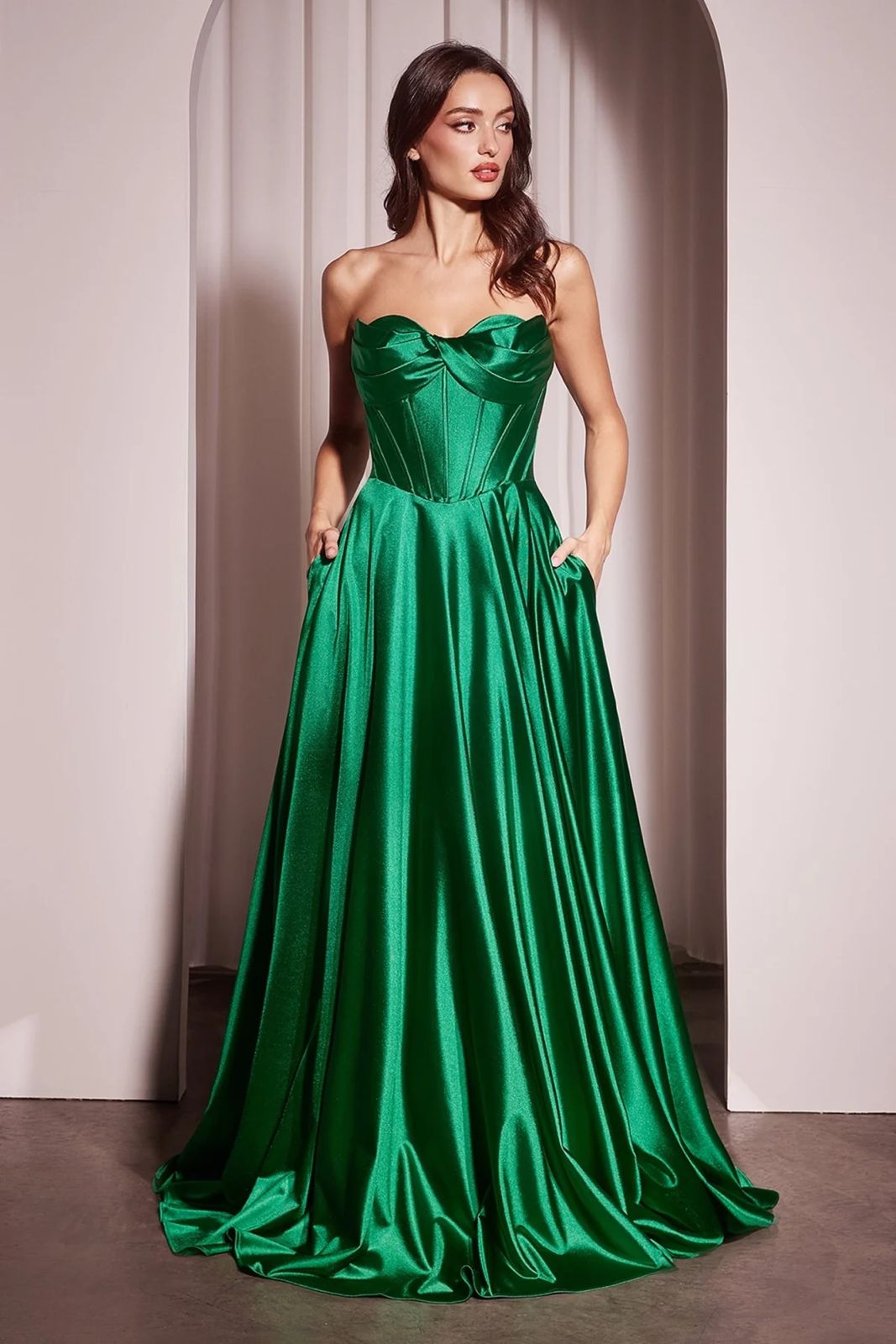 VESTIDO CORTE A CON ESCOTE EN PIERNA (straple) MODELO CD378