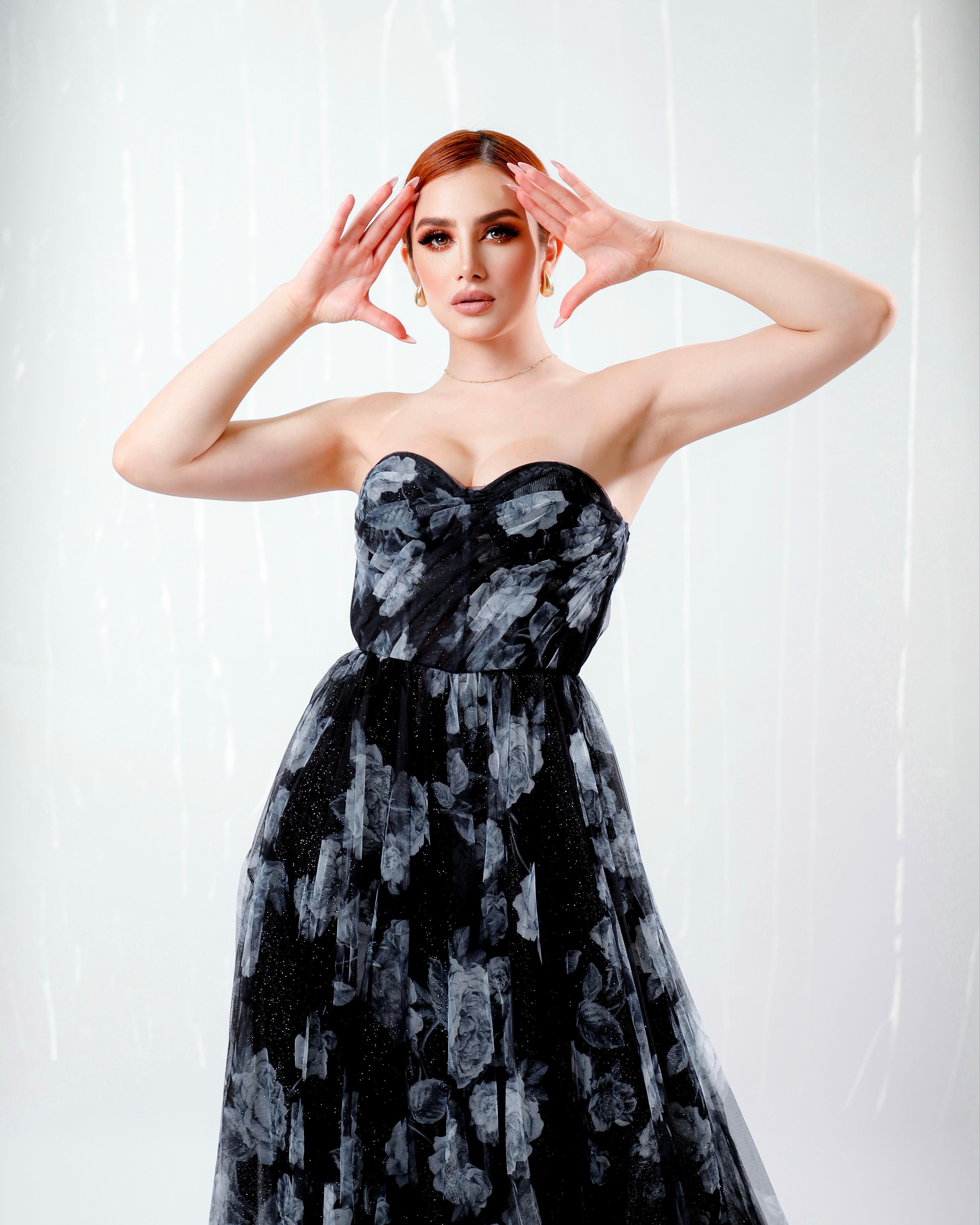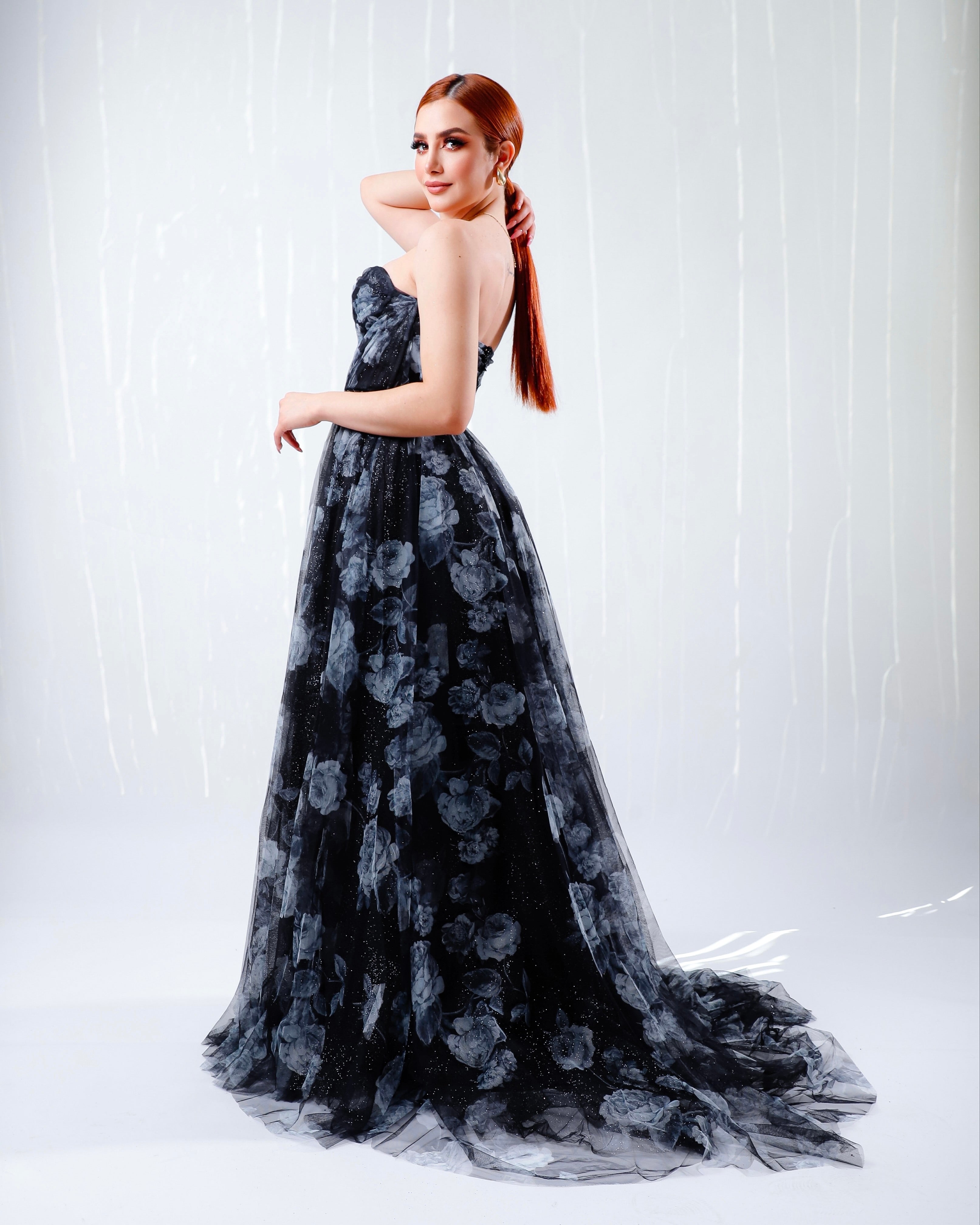 Vestido strapless flores